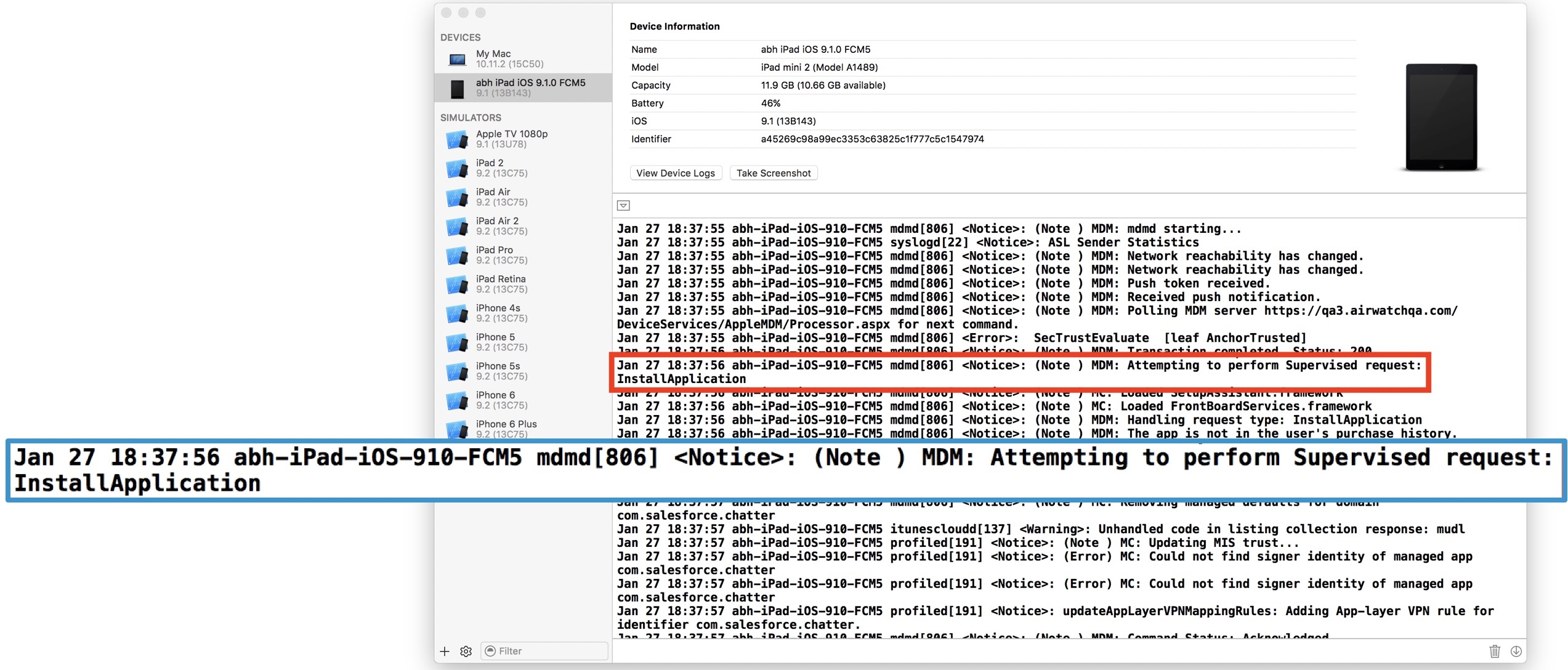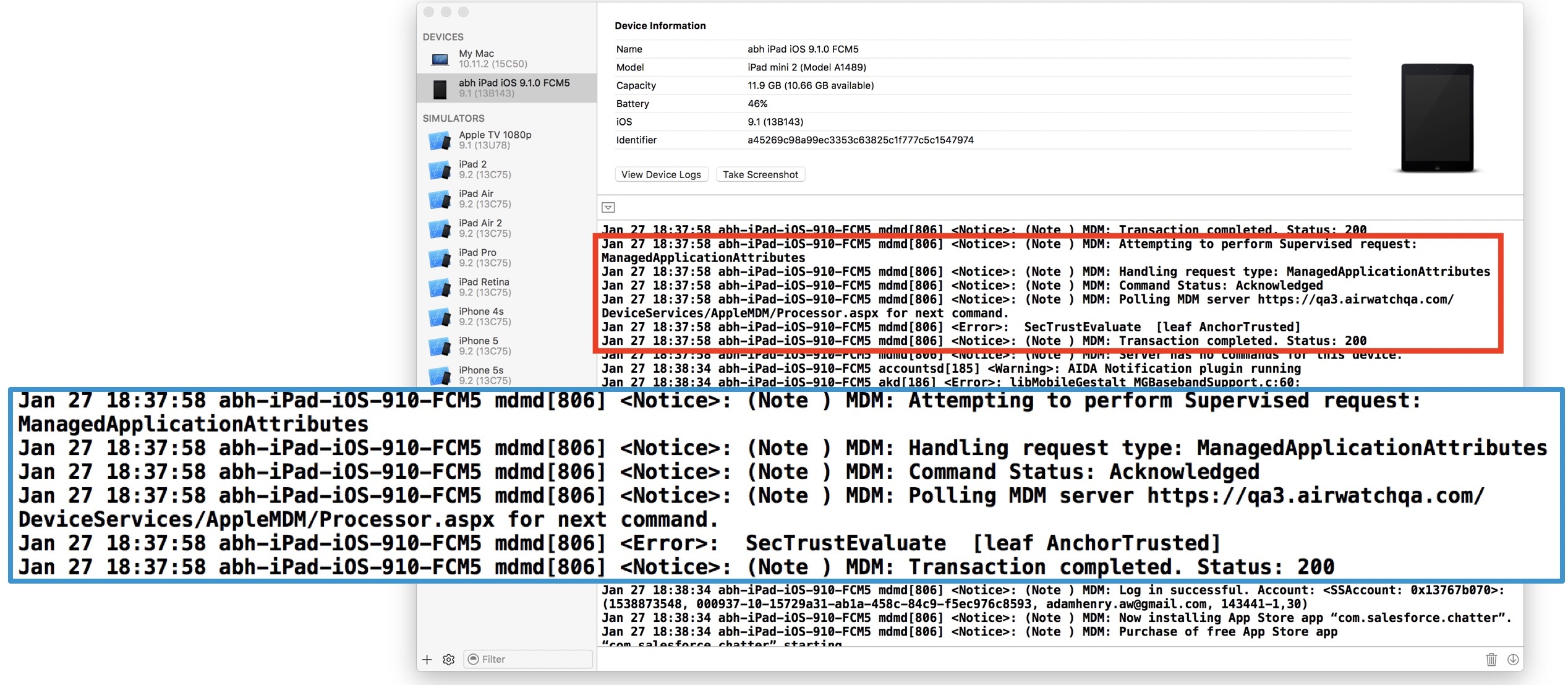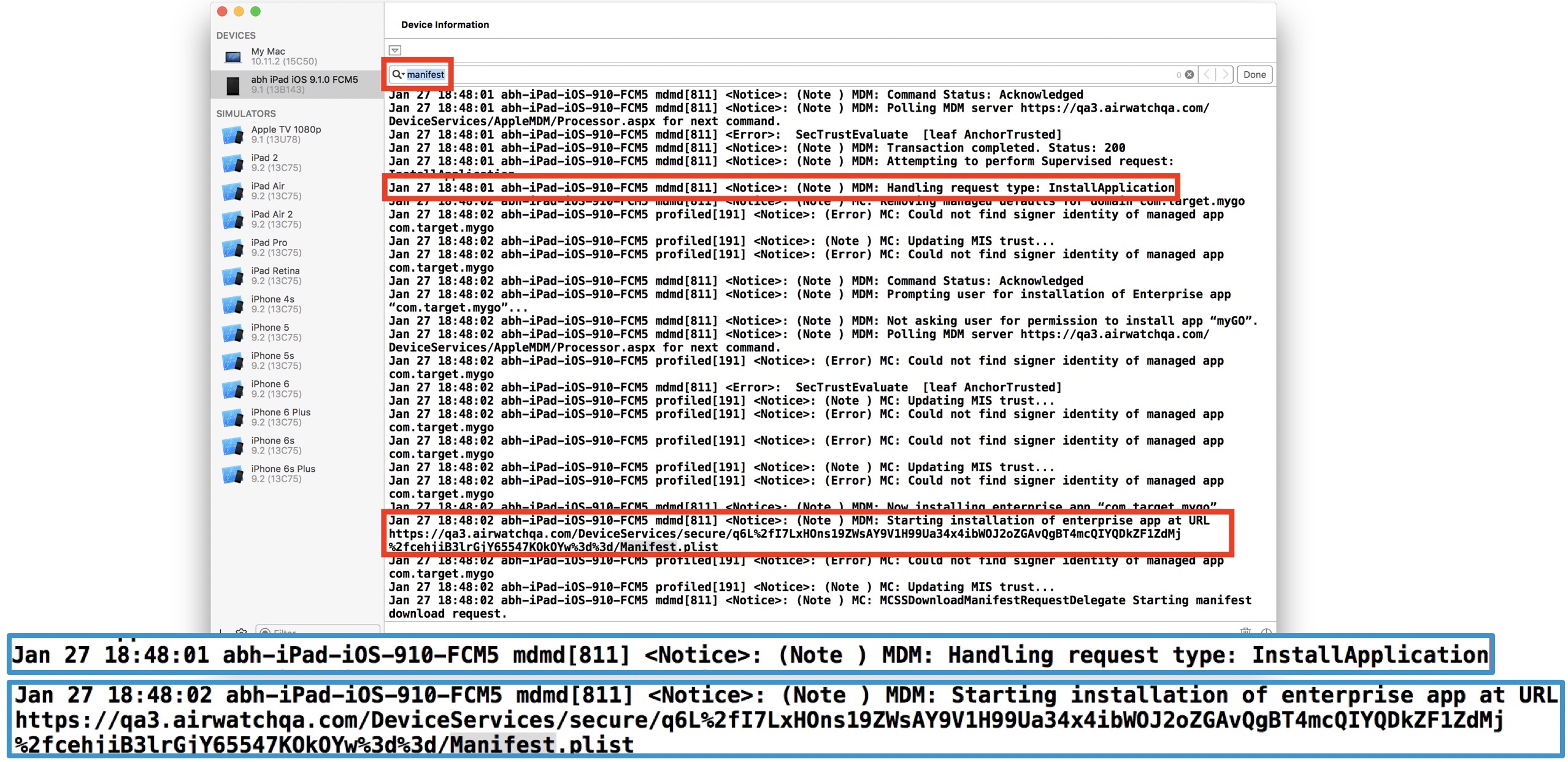 See General Article on AirWatch Logs.
