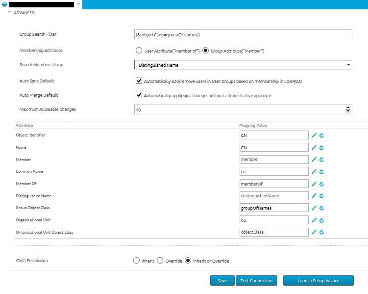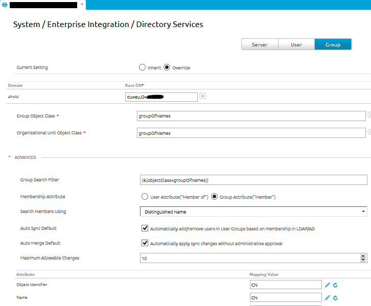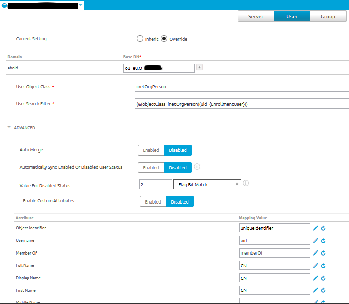 • Change the attribute where Distinguished Name in the AW Console is ‘distinguishedName’ to ’entryDN’ (see attached screenshot)