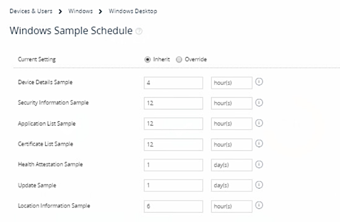 - Go to Settings > Devices & Users > Windows > Windows Desktop > Windows Sample Schedule