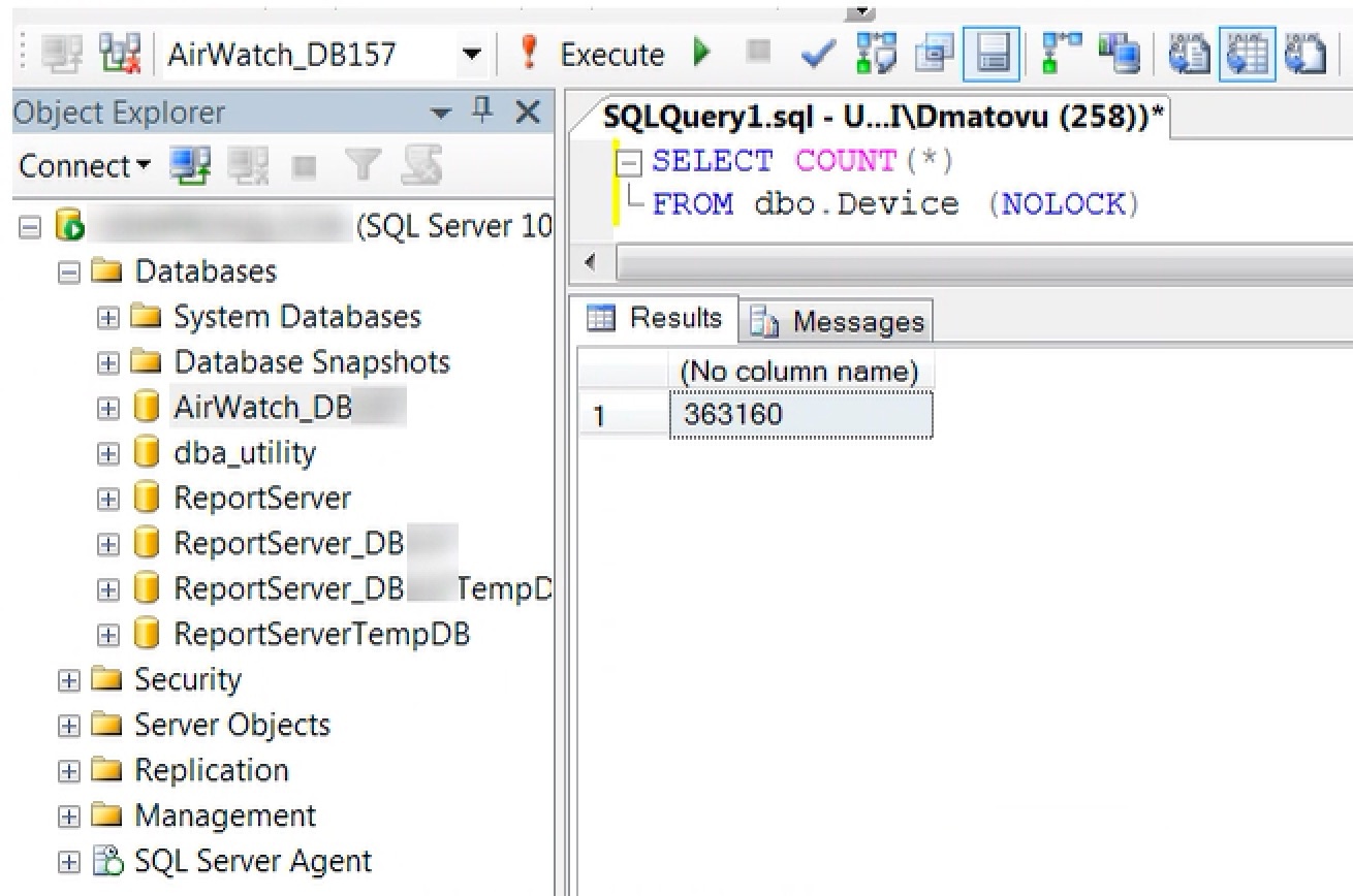On the new database: Perform a test query. For example, one for device count, to ensure proper functioning. To do this: